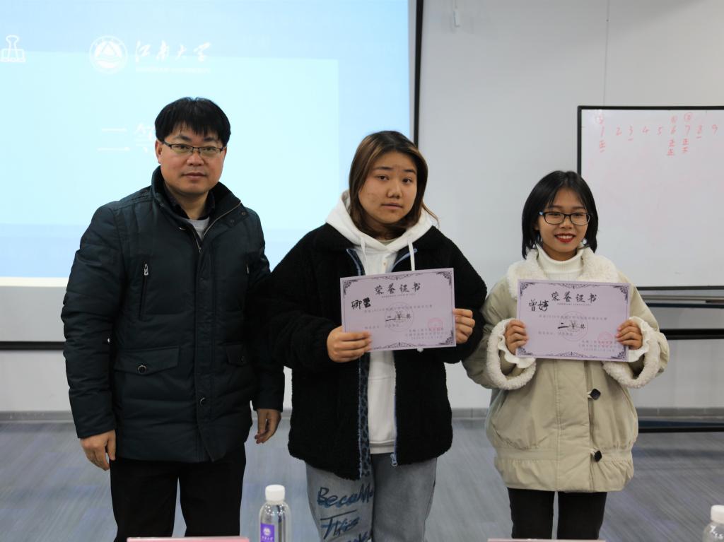 活动第二部分,参赛选手上台演讲。赛中,各选手观点明确,表达流利,口语标准,引来了观赛者的阵阵掌声。最后,卢泓良荣获本次比赛的一等奖,卿莹、曾婷荣获二等奖,周毓堂、李智慧、张志伟荣获三等奖。