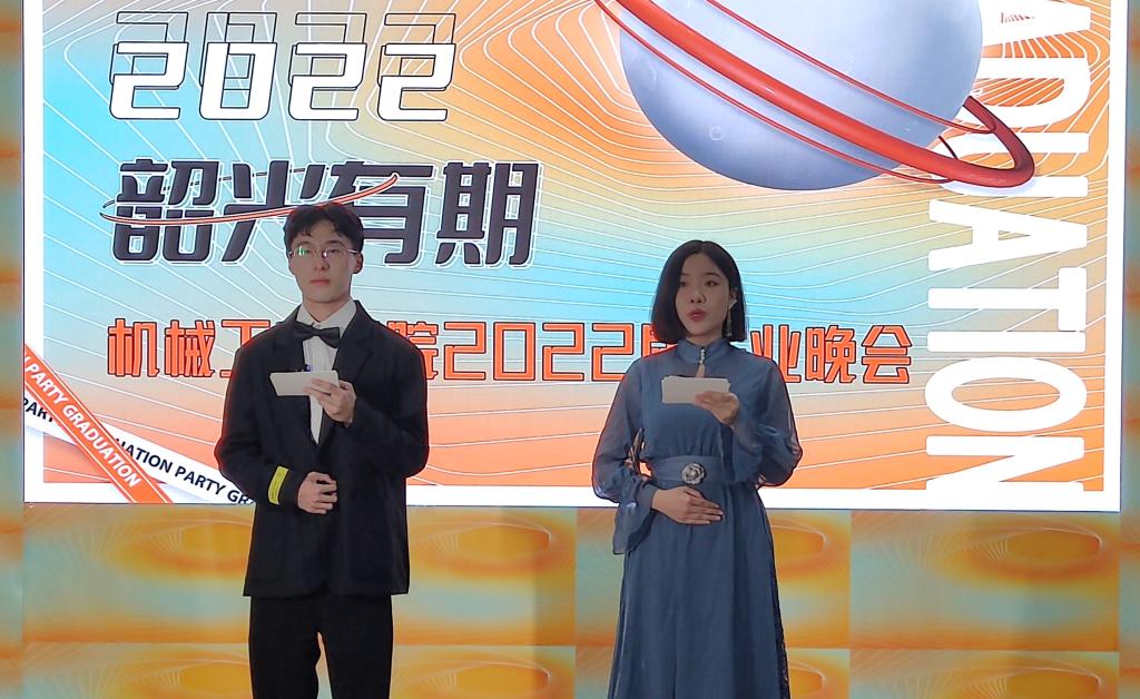 短暂的休息后,姜悦同学一首《这世界那么多人》,用动听的歌声感谢命运,感恩遇见;何书宇、刘可兴等同学带来的《不再犹豫+Get outta my way》,为即将远行的机械学子加油鼓劲,无论遇到何种困难与挫折,请大声喊出“Get outta my way!”。在最后一轮抽奖环节中,毕业晚会缓缓落下帷幕。