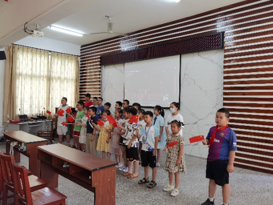 团队成员带领社区青少年观看烈士纪录片、红色电影《我和我的祖国》片段,并欣赏相关书画作品,了解革命烈士的英勇壮举,学习百年奋斗征程中的重要历史事件,深刻体会到每位中国人血脉相连。随后,学唱歌曲《歌唱祖国》,让他们感受祖国的繁荣昌盛,激发爱国情怀。通过红色文化学习,在青少年心中种下一颗爱党爱国的红色种子,萌芽、生长、开花、结果,让红色基因代代传承。