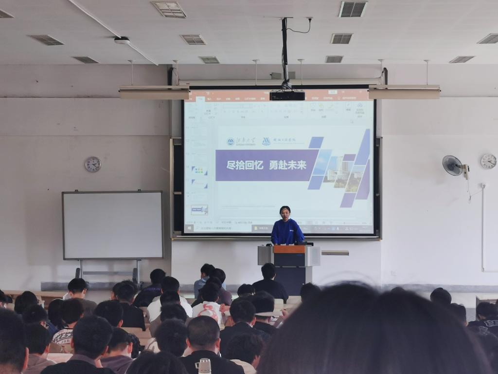 在1A102教室开展“‘研’途有我,全程守护”考研复试经验分享会,会议邀请了对外经济贸易大学硕士、考研全程规划专家程跃进行复试培训,共计51名学生参与,毕业年级辅导员萧欣彤主持本次活动。积极引导并助力学生顺利上岸。