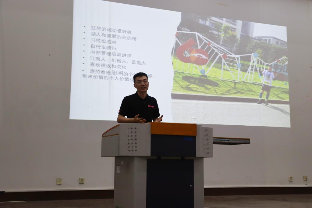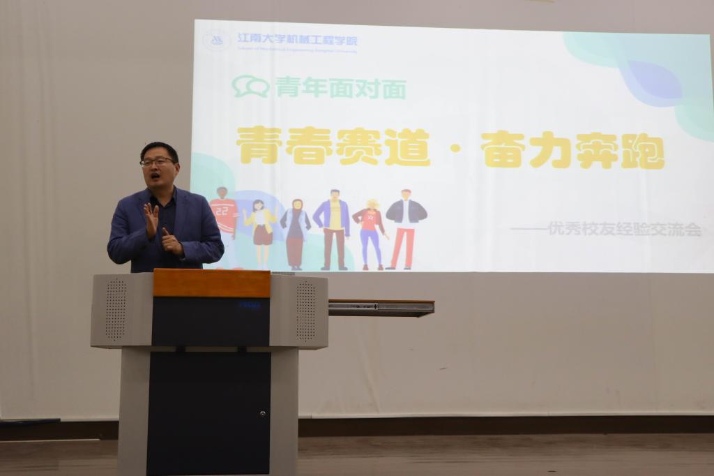 在教学楼1C109教室举办“青春赛道,奋力奔跑”优秀校友经验交流会。本次交流会邀请到了机械学院2000级校友、江南模塑科技股份有限公司研发总监薛旷华,2006级校友、迪卡侬全球采购和智能制造硬件事业部中国区负责人陈博。污污漫