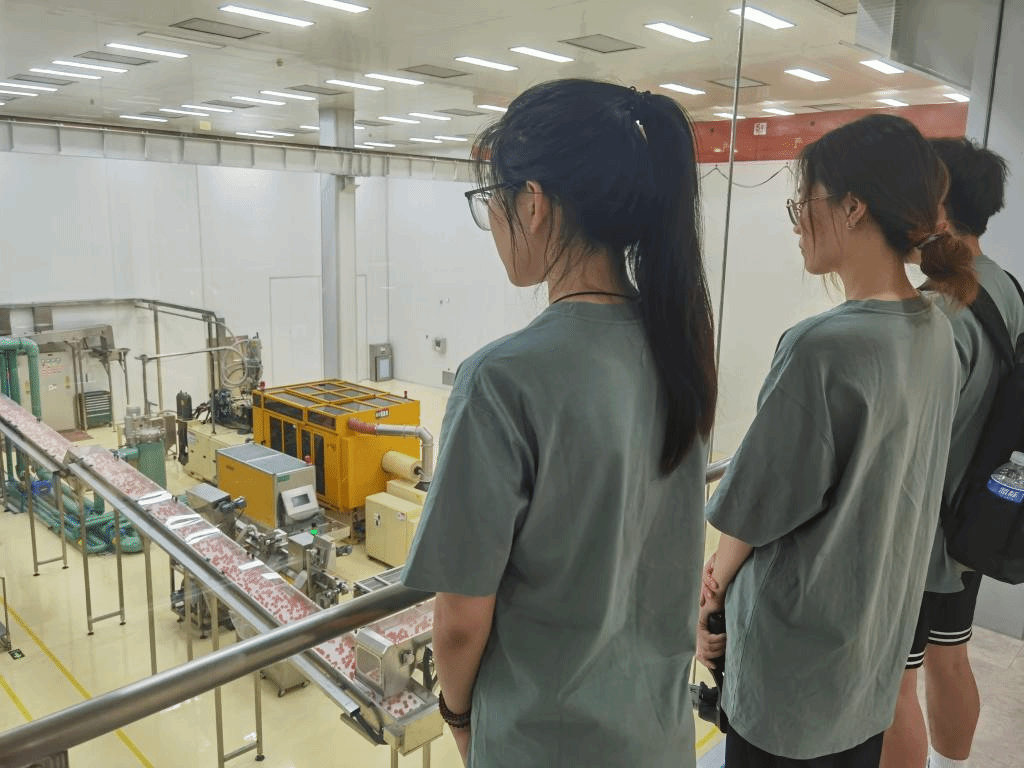 在蓝莓龙头企业——吉林蓝域农业发展有限公司,实践小队进行了参观学习。该公司大力发展蓝莓深加工,在经营新鲜串果同时,开发蓝莓汁、蓝莓酱等附属产业,努力实现经济效益最大化。同时推动校企联合,与一些大专院校签订了产、学、研深度合作协议,全面提高科技创新水平。队员们在参观中找到与自己所学的食品包装、机械控制专业的契合点,把课堂里学到的理论知识与实践联系起来,思考一个个关于应用知识、创新科技、中国智造等方面的问题。