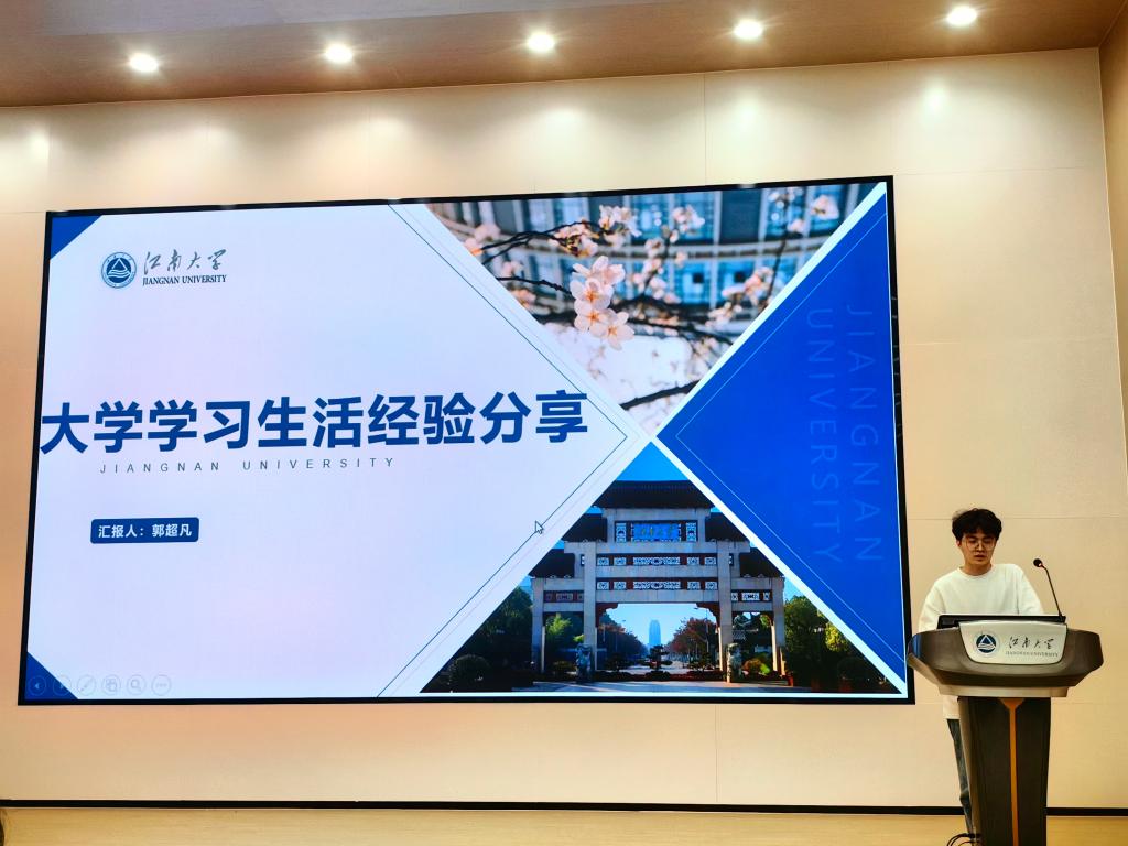 王谡阳分享了自己在本科毕业后加入研究生支教团,来到云南芒宽中学支教的故事,他用幽默风趣的语言讲述了他在支教期间与班上最调皮的“篮球冠军”之间的感人故事,向同学们分享他在支教时的点点滴滴。最后他用习近平总书记在庆祝中国共产主义青年团成立100周年大会上的讲话“奋斗是青春最亮丽的底色,行动是青年最有效的磨砺。有责任有担当,青春才会闪光”来勉励大家,鼓励同学们用江南力量践行江南青年对国家的赤子之心和报国之志。