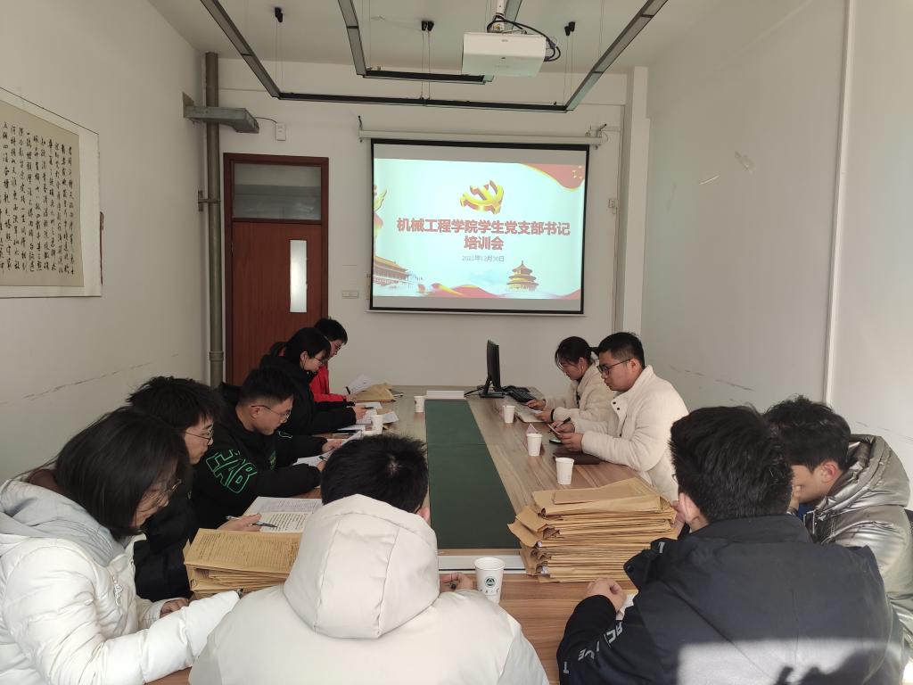 在院C309-2会议室开展了学生党支部书记培训会。学院分团委书记兼学工办主任孟召双、辅导员孟飞以及9位学生党支部书记参加此次培训。