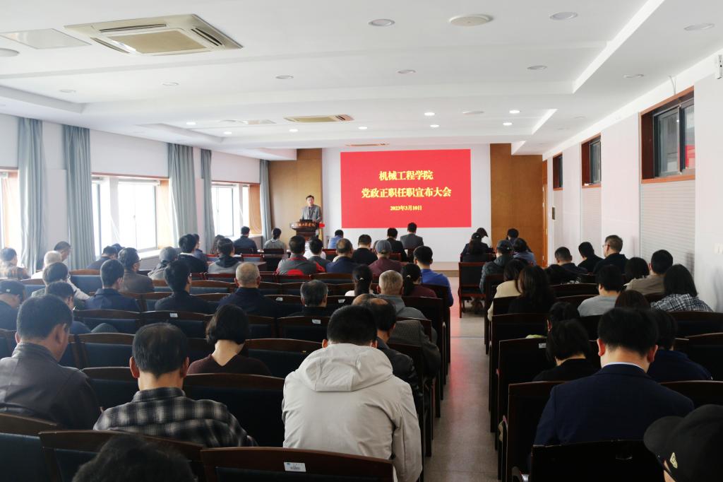 3月10日,机械工程学院党政正职任职宣布大会在机械楼301学术报告厅(机缘厅)召开,校党委副书记符惠明出席会议并发表讲话。全院教职工参加会议,会议由学院副院长王利强主持。