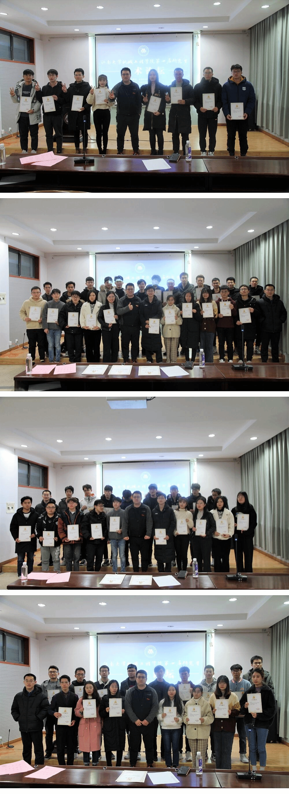 本届论坛共收到稿件171篇,经论文评审委员会审核,遴选出63篇优秀论文做现场汇报。与会的青年学子围绕现代机械设计及理论、智能检测控制与机器人技术、 先进制造技术与自动化、食品机械与过程装备、包装技术与材料工程等领域在5个分会场开展学术研讨,分享学术成果。通过对现场63个分会场报告进行打分,共评出一等奖8篇、二等奖20篇、三等奖35篇。