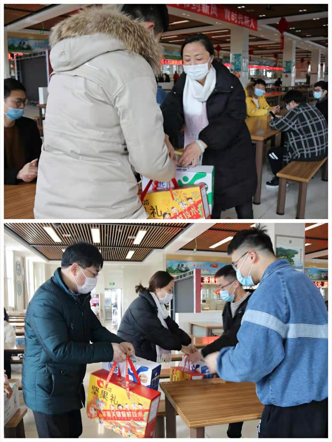 宿舍走访结束后,在严格遵守疫情防控要求的前提下,为让学生在校感受过年的气氛,学院领导、辅导员前往学校一食堂,邀请几位会包饺子的同学,将学院老师提前备好的饺子馅与皮,包成了象征团圆幸福的饺子。同时,学院领导将学院为留校学子准备的新年大礼包发给他们,叮嘱大家注意身体健康,有任何困难可以随时联系学院老师,学院会及时帮大家解决。热腾腾的饺子端出后,学院辅导员将饺子分发给机械留校学子,让他们在食堂分散就餐。留校学生陈达华讲,学院辅导员之前征求过学生想吃什么馅,这次准备的很充足很用心,一共有四种馅,都是大家喜欢吃的,非常感谢学院让他们尝到新年味道。