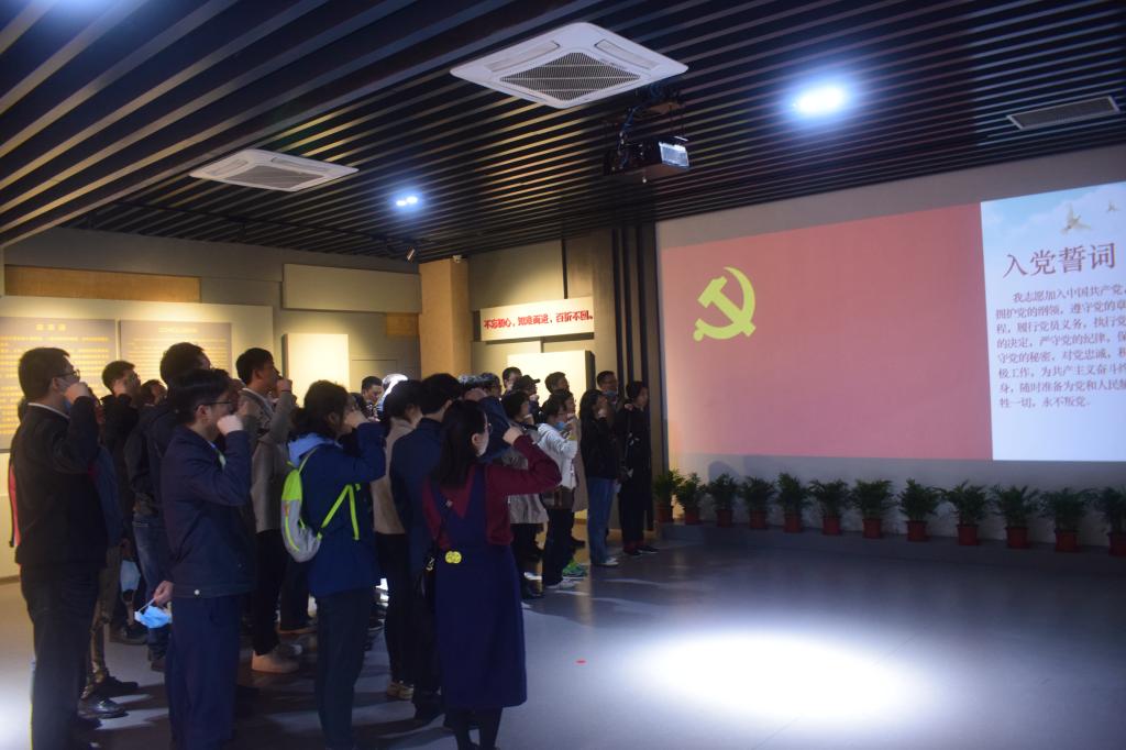 上午在在宜兴校区,工作人员介绍了校区整体规划、建筑功能等情况,老师们实地参观了即将完工的一号科研楼,与工作人员进行交流,了解了新校区的建设进展,并在一号科研楼前合影留念。下午在新四军和苏南抗日根据地纪念馆学习,这里记载了中国共产党以太华山区为中心的苏南抗日斗争和新四军根据地建设的重要历史。一间间展室、一件件陈列品,一张张照片……党员教师认真观看,对如今来之不易的幸福生活感慨万千。最后,还举行了重温入党誓词活动,面对鲜红的党旗,党员同志们举起右手,由高雪梅领誓,提醒每个党员牢记入党时的庄严承诺,坚持为人民服务的根本宗旨并贯彻始终。活动结束后,老师们表示今天的党日活动非常有意义,既学习了党史,更加深刻地认识到我们党在历史长河中的壮丽篇章,又参观了新校区,看到了学校的发展蓝图,大家要学史明理、学史增信、学史崇德、学史力行,提升岗位工作能力,助力学校学院发展。