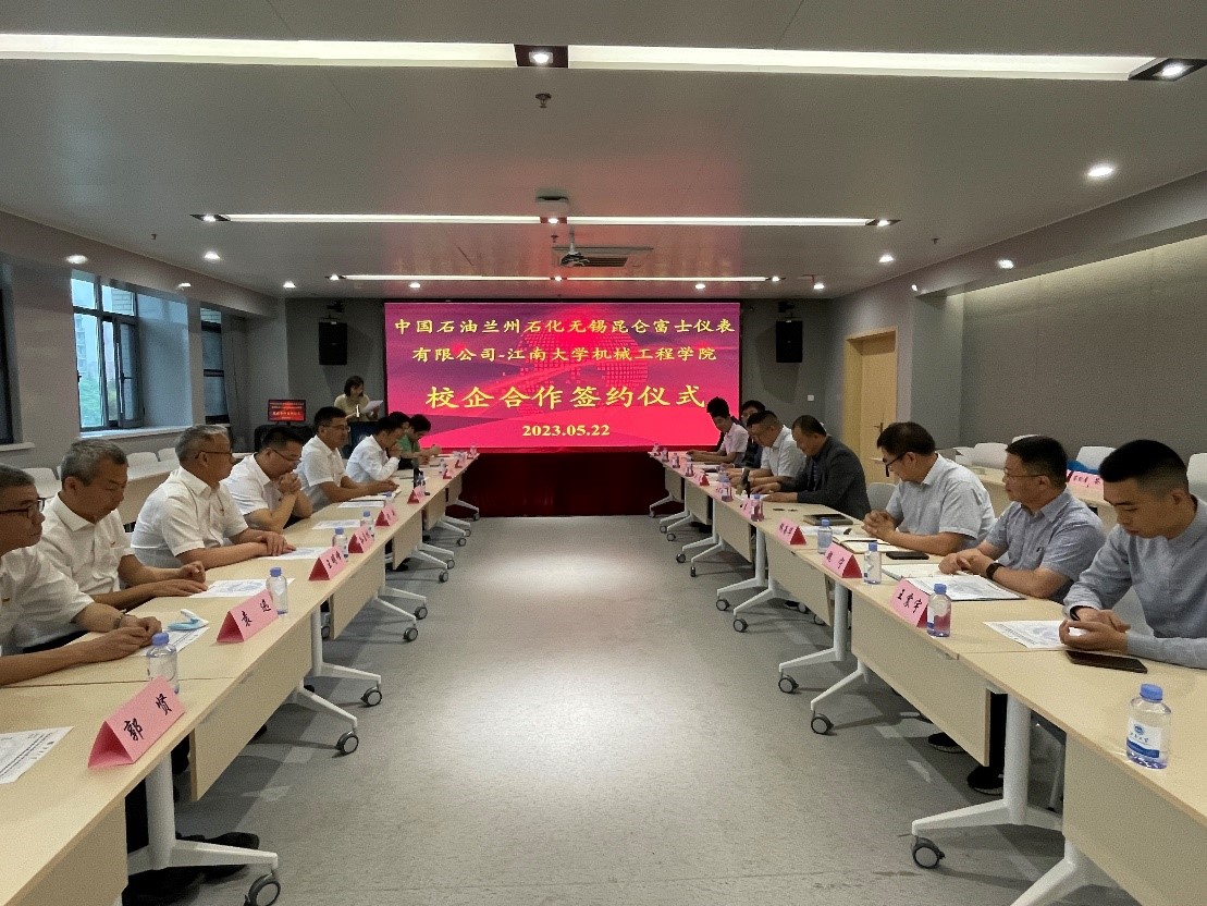 与中国石油兰州石化无锡昆仑富士仪表有限公司产学研战略合作签约仪式在先进技术研究院A302会议室举行。无锡市高新区科技局副局长李振东,中国石油兰州石化无锡昆仑富士仪表有限公司党总支书记、总经理杨德寿,污污漫