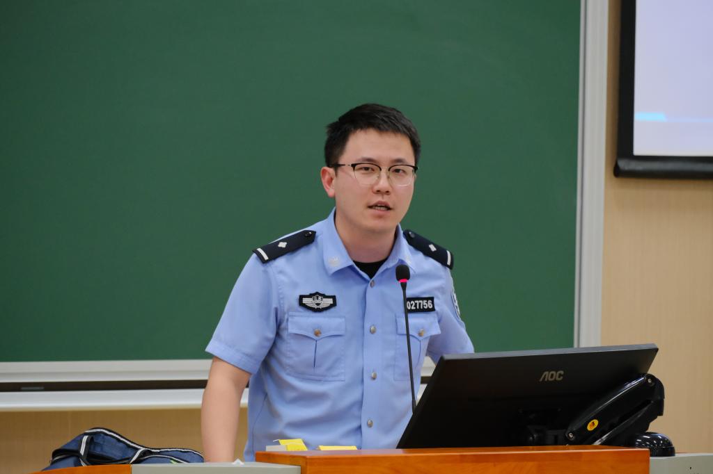 2023级本科生“防范于心,反诈同行”安全教育讲座在第二教学楼2A127教室成功举办。无锡市滨湖区雪浪派出所民警杨恺、污污漫