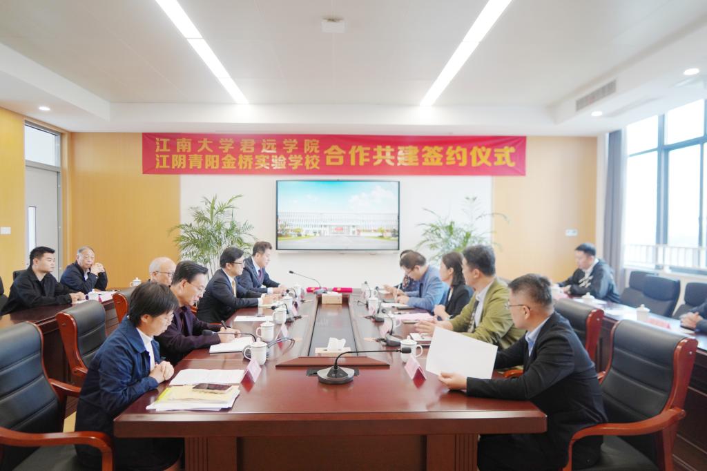 副院长兼君远学院副院长钱善华、君远学院竞赛指导教师宁萌副教授、办公室主任赵雪娟一行赴江阴青阳金桥实验学校举行共建签约仪式。无锡金桥教育集团董事长马自雄、总经理马翀、江阴青阳金桥实验学校校长郁洪千、周蓉及相关部门负责人出席了签约仪式。签约仪式由无锡金桥教育集团综合办主任马松杉主持。