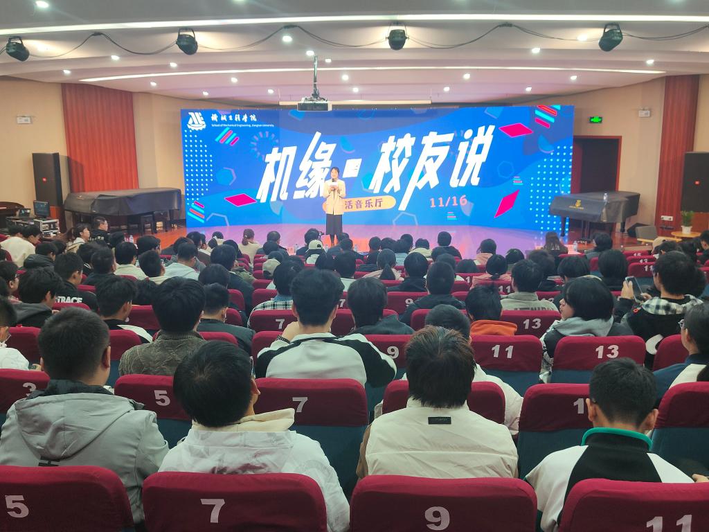 刘升恒对两位机械校友的返校与分享访谈表示欢迎及感谢。她指出,学缘上的同源性使校友榜样对在校生更有吸引力、感染力和号召力。学院举办“机缘·校友说”系列访谈活动,旨在发挥校友“传、帮、带”的育人作用,以校友榜样力量为感召,激励更多年轻学子将体悟转化为自己奋斗不竭的精神动力,勇担先锋做表率,争做新时代的江南青年。