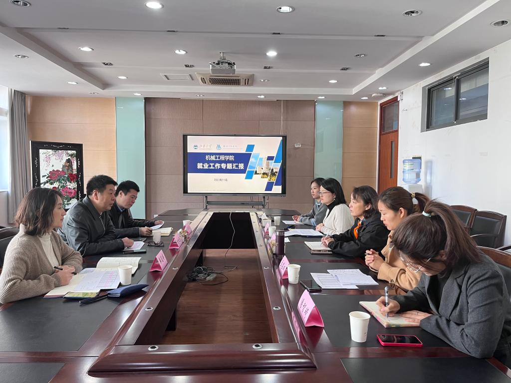 ,调研指导毕业生就业工作。学院党委书记高雪梅,党委副书记、副院长刘升恒及辅导员参加会议。