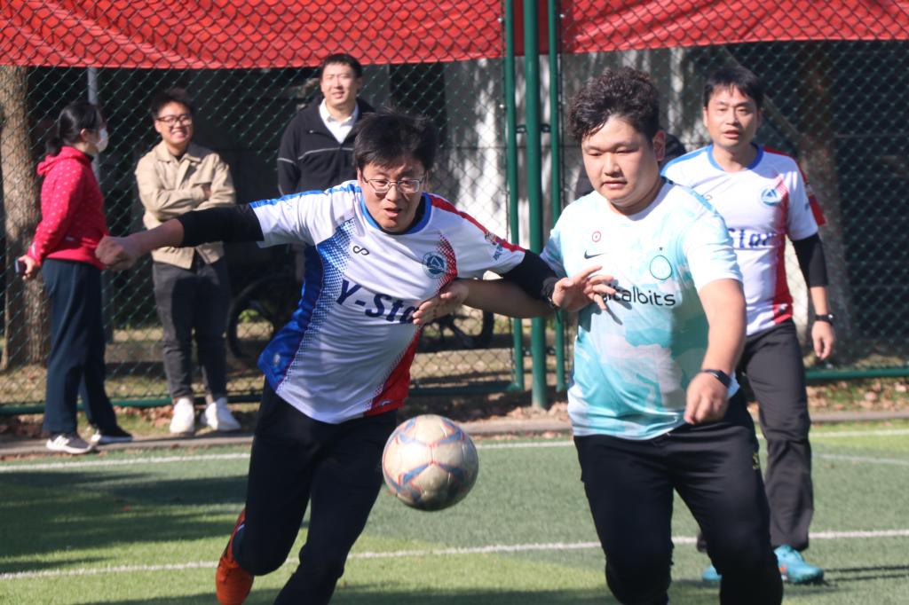 比赛伊始,运动员双方迅速进入状态,展开了激烈的攻防战。校友队经验丰富、配合默契,他们娴熟地带球过人,数次突破对方防线,连续得分。学院球队也不遑多让,在下半场展开猛烈反击,抢断、控球、传球、射门一气呵成。观赛同学们不时发出阵阵欢呼,现场比赛气氛热烈。