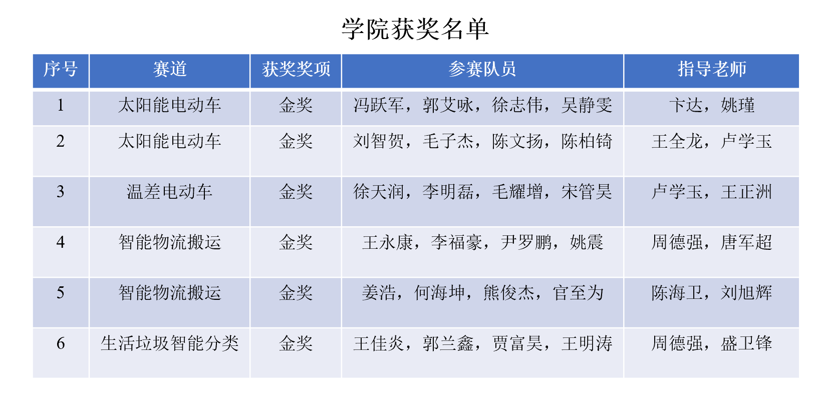 学院将学科竞赛作为提升学生工程能力的重要载体来抓,强化项目培育和竞赛组织,组建由院领导、工程训练中心主任及竞赛骨干教师的工作小组,积极组织学生参与竞赛,以赛促训提升学生工程实践能力,为6项金奖佳绩的取得打下扎实的基础,这也标志着学院大学生工程实践与创新教育迈上新台阶。截至目前,学院本年度共获A类竞赛奖项43项。