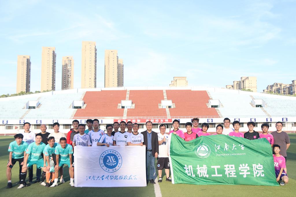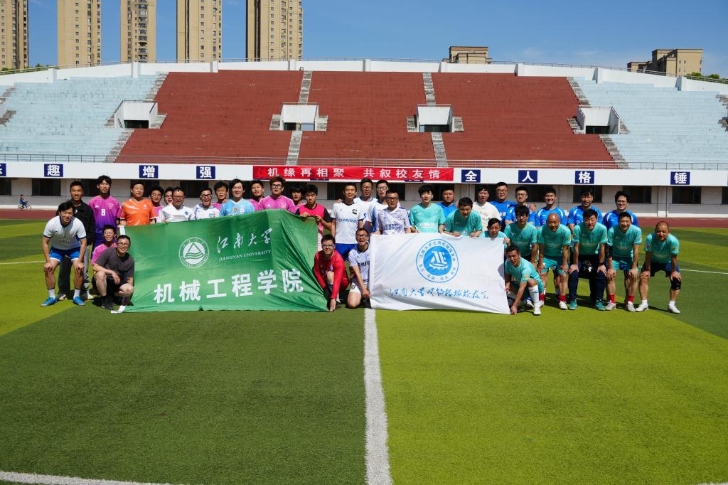 校友足球赛在校体育中心激情开赛。来自苏州、无锡校友分会的30余位校友重返母校,与学院教师、院队学生组成联队同场竞技,以足球为纽带共叙师生情。