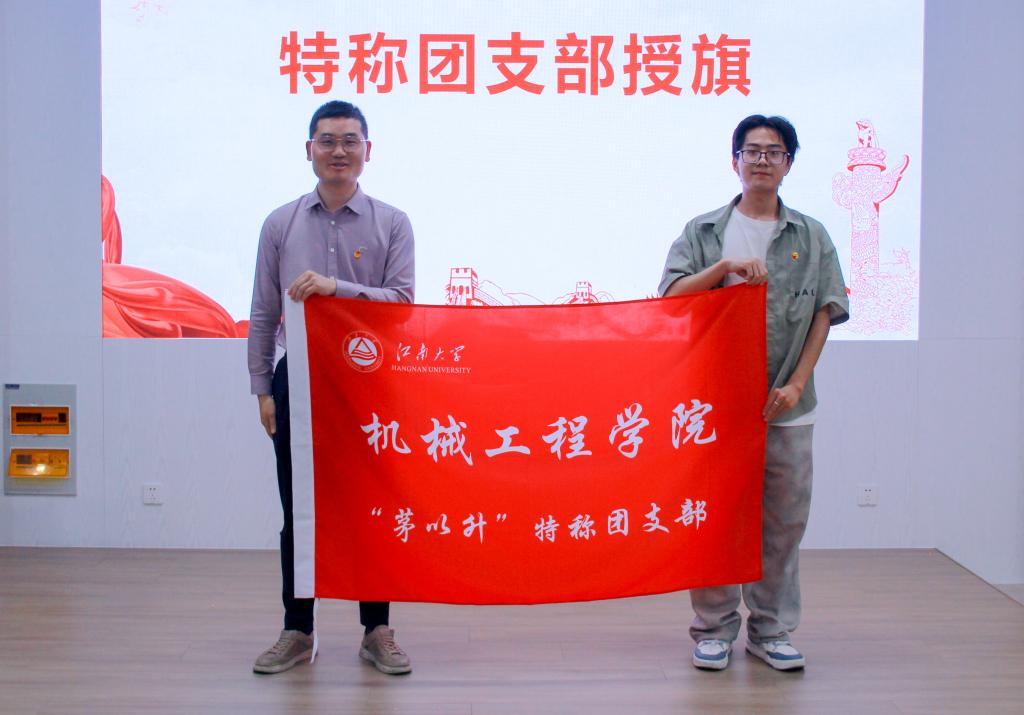 授旗环节,李诗炜、何涛、宋京姝为3个特称团支部授旗。鲜红的旗帜承载着传承与创新的使命,接过旗帜的团支部代表郑重承诺:“以旗帜为引领,赓续‘特称’精神,书写奋斗新篇!”