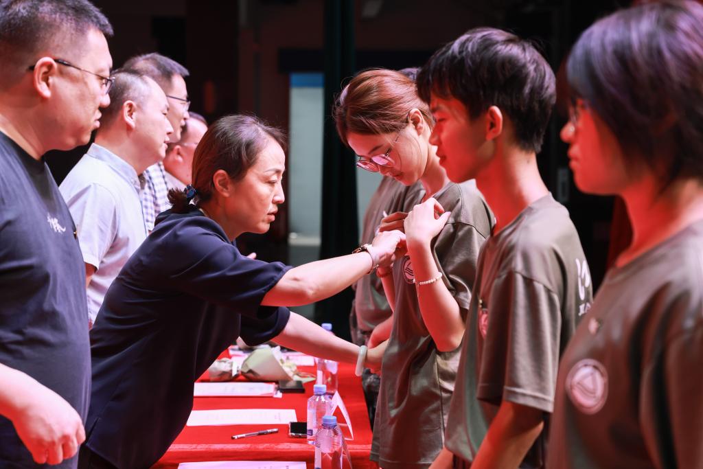 学院领导为新生佩戴校徽