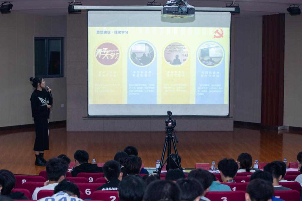 经自主申请、年级评选等环节,共14个集体参加了本次答辩会。各集体答辩人轮流上台,通过“笑着奔跑”、“玉琢成器”、“‘械’逅江南”等主题向在场师生展示各集体风采。主题虽各不相同,但积极进取、拼搏向上、团结友爱是他们的共性。他们之中有志愿先锋队、保研大户、专利收割机、绩点领头羊等,一张张荣誉证书、一个个拼搏数据、一幅幅团建合影赢得了阵阵喝彩和掌声,给在场的评委老师和同学们留下了深刻的印象。