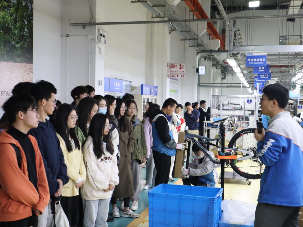 签约后,中国生产校企合作负责人吕云飞作专题报告,介绍了迪卡侬公司历史发展、产业布局、创新发展方向及未来战略等;2019届校友、迪卡侬供应链主管曲星茹结合工作经历,讲述自己从卓工实习生成长为供应链主管的故事。交流环节,在座同学从职业规划、能力培养和未来发展等方面纷纷提问,双方进行了热烈的讨论、互动。座谈会后,师生一行前往公司研发中心和生产工厂实地参观全产业链生产流程,深入了解公司产业发展和产品研发试验过程。