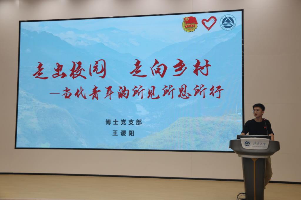 王谡阳分享了自己在本科毕业后加入研究生支教团,来到云南芒宽中学支教的故事,他用幽默风趣的语言讲述了他在支教期间与班上最调皮的“篮球冠军”之间的感人故事,向同学们分享他在支教时的点点滴滴。最后他用习近平总书记在庆祝中国共产主义青年团成立100周年大会上的讲话“奋斗是青春最亮丽的底色,行动是青年最有效的磨砺。有责任有担当,青春才会闪光”来勉励大家,鼓励同学们用江南力量践行江南青年对国家的赤子之心和报国之志。