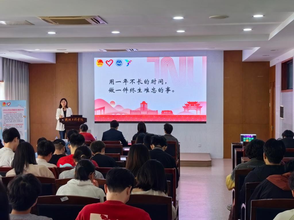 为进一步引导和鼓励青年学生积极投身乡村振兴事业,到基层建功立业,4月23日下午,2024年江南大学“西部计划”“志愿服务乡村振兴计划”宣讲报告会(第三场)在机械工程学院C302报告厅举行。盐城市盐都区团区委副书记侍乔,机械工程学院党委副书记、副院长刘升恒,学院学工办副主任潘智琦出席活动,江苏大学生志愿服务乡村振兴计划志愿者方思源、崔俊,江南大学志愿服务宣讲团成员与近200位学生参加活动。宣讲会由学院分团委书记孟召双主持。