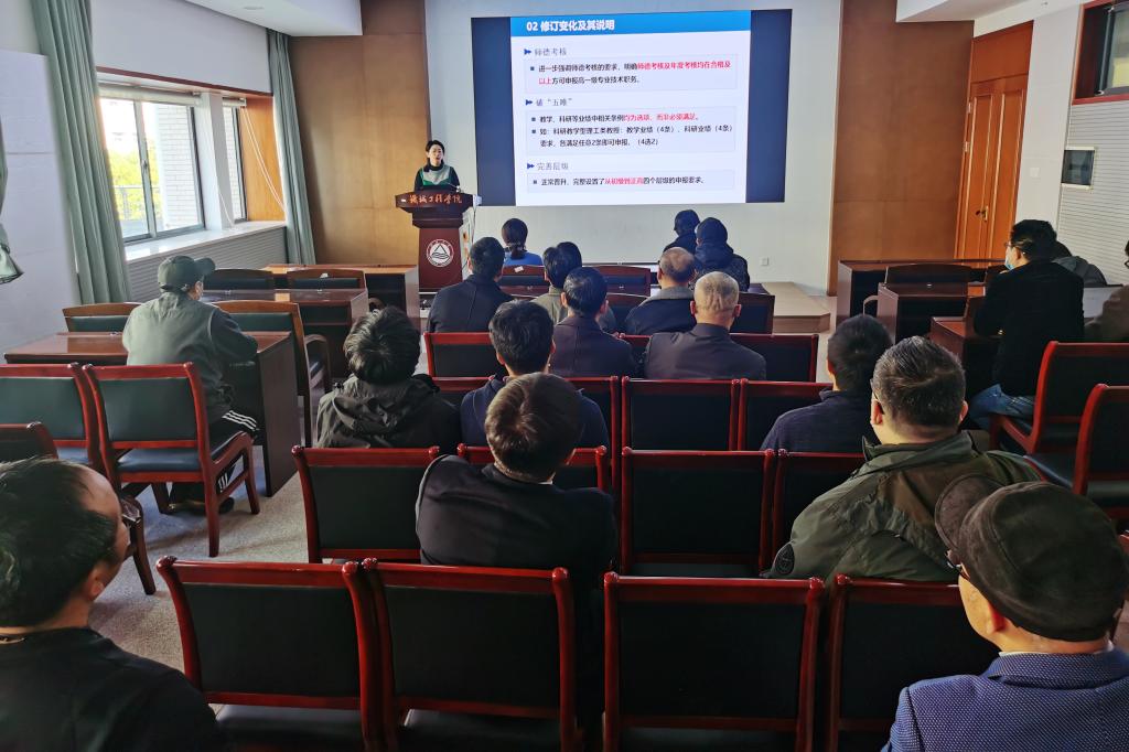 为切实帮助教师了解和理解学校新修订的职称评审政策,为师生办实事,11月10日下午,机械工程学院在C302会议室举办职称评审政策解读会,邀请人力资源处师资科科长王宇灏为大家解读2021年新修订的职称评审政策。机械工程学院党委书记高雪梅出席会议,近30名教师参加会议。