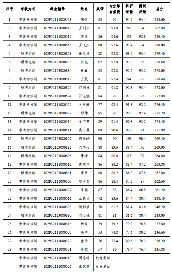 2022年3月2日由机械工程学院组织的2022年博士面试考核已经结束,现将考核成绩公布如下: