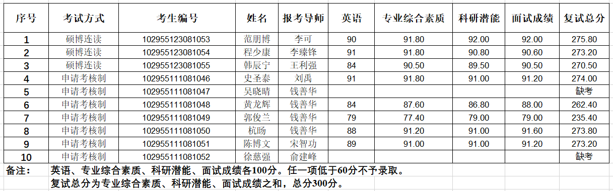 机械工程学院组织的2025年博士面试考核(第二批)已经结束,现将考核成绩公布如下: