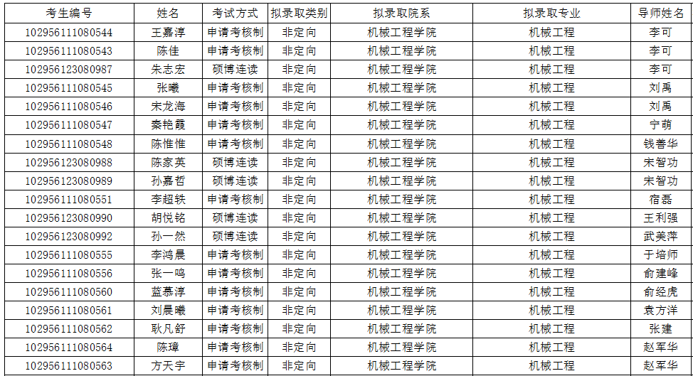 公示期10个工作日(1月19日-1月30日)。考生如有异议,请与机械工程学院联系,联系电话:0510-85910583,邮箱:[email protected]。根据教育部政策,每位考生只能被一所学校录取,在一所学校注册学籍,凡被拟录取的考生,原则上不得参加其他学校的博士考试和录取,如有特殊情况,请速与学院联系,否则由此导致不能录取或不能获得学籍等一切后果,由考生本人负责。实际录取名单以学校研究生招生工作领导小组审核通过,教育部最终审定为准。