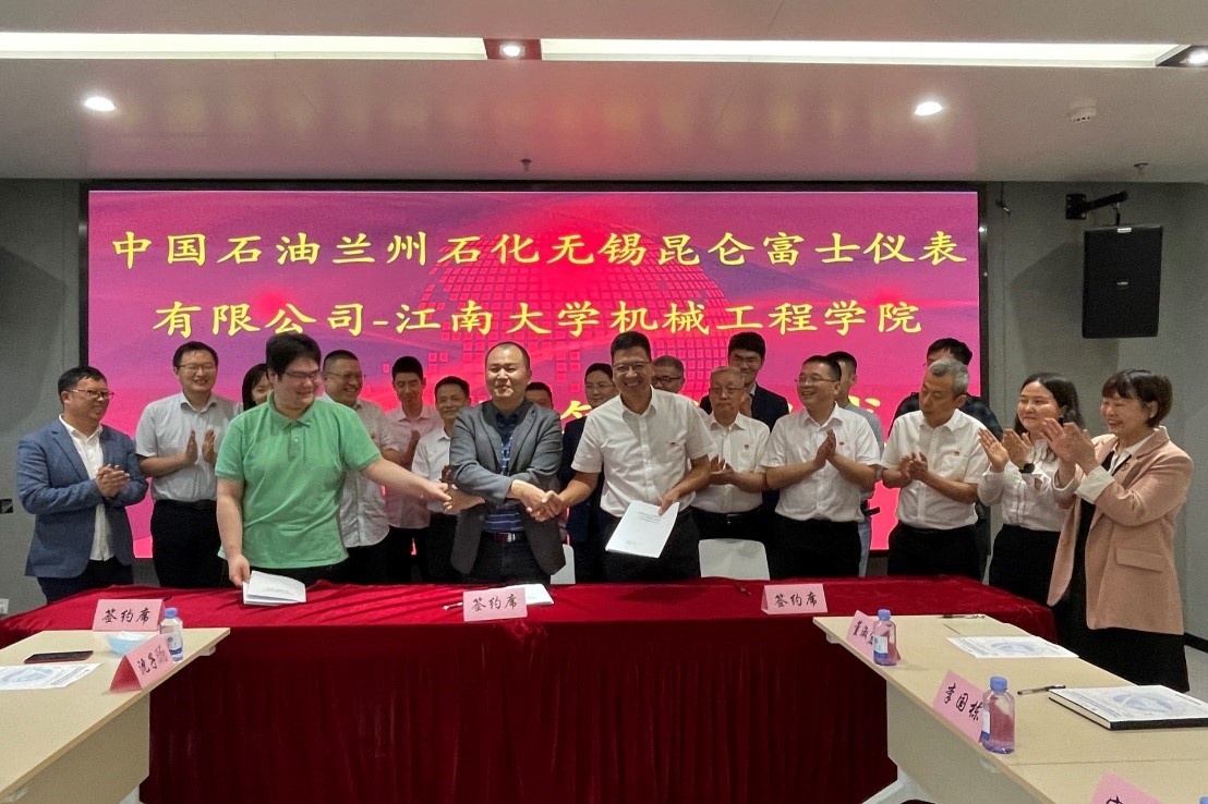 与中国石油兰州石化无锡昆仑富士仪表有限公司产学研战略合作签约仪式在先进技术研究院A302会议室举行。无锡市高新区科技局副局长李振东,中国石油兰州石化无锡昆仑富士仪表有限公司党总支书记、总经理杨德寿,污污漫
