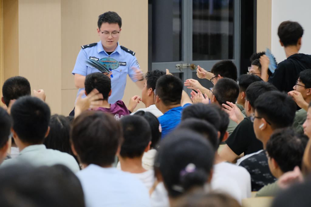 2023级本科生“防范于心,反诈同行”安全教育讲座在第二教学楼2A127教室成功举办。无锡市滨湖区雪浪派出所民警杨恺、污污漫