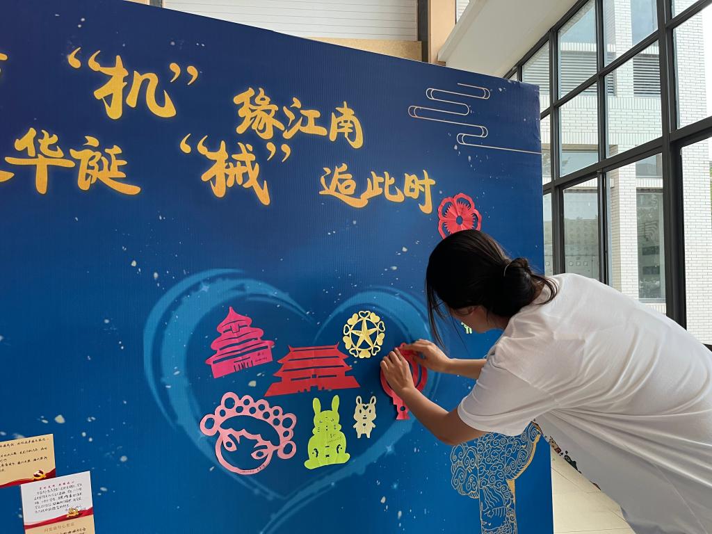 一楼大厅,学生们用剪纸的形式剪出天安门、天坛、兔子等图案,用祝福拼出“中国”二字,表达对伟大祖国的美好祝福。在学校东门、升旗台、图书馆和学院正门的四个打卡点,机械学子伴着鲜艳的五星红旗拍照留念,爱国热忱在胸中激荡。视频征集活动中,来自海内外的机械学子以地域、学生组织、团支部为单位通过镜头,共同祝愿伟大祖国欣欣向荣。