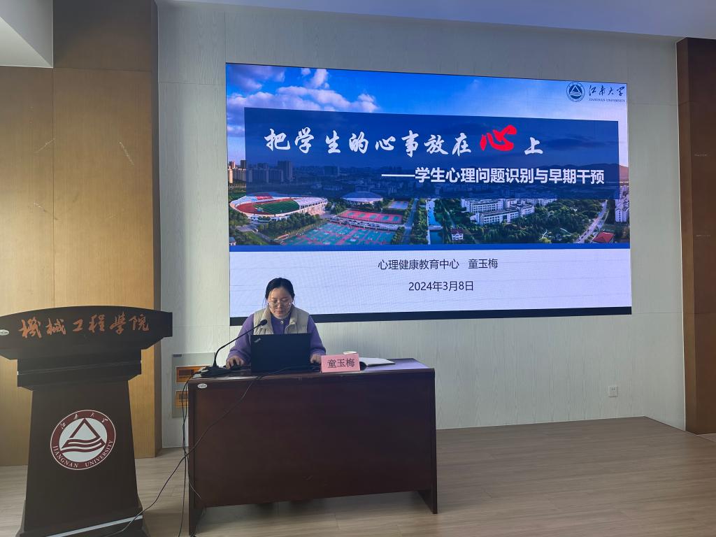 面向班主任、研究生导师及辅导员群体,邀请学校心理健康教育中心童玉梅老师作“把学生的心事放在心上——学生心理问题识别与早期干预”专题讲座,重点从“观察-询问-劝告-转介”四方面详细讲解了需要特别关心关注的学生类型、谈心谈话技巧和话术,以及危机干预中团队协作的重要性,给予老师们信心和支持。学院心理工作辅导员张倩瑶老师针对心理委员、宿舍长和课题组负责人群体,作《人际沟通的艺术》的讲座,结合具体案例讲授科学的工作方法及应对技巧,从哪些同学需要关心、怎么关心帮助同学以及如何进行自我关怀等三个方面,重点剖析了需要帮助的征兆,并暖心提醒同学们在关心帮助别人的同时,也不要忘记给予自己关怀。