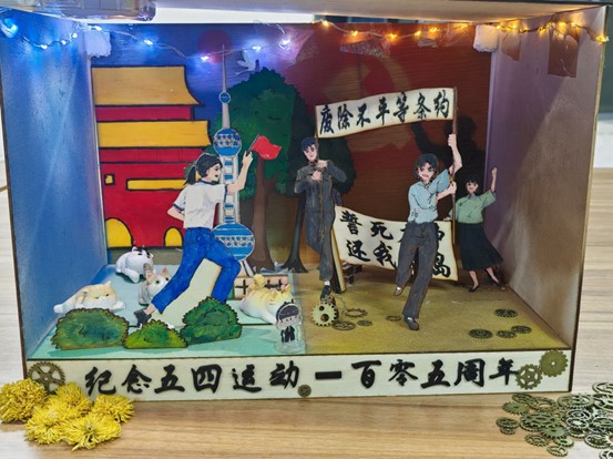 参赛选手精心准备,将所学知识融会贯通,在内容构思上将五四青年节、党史相结合,感悟青年与社会发展的同频共振,部分小组也在成品设计中加入流麻、机械马达等元素,具有良好的创新性和艺术性。