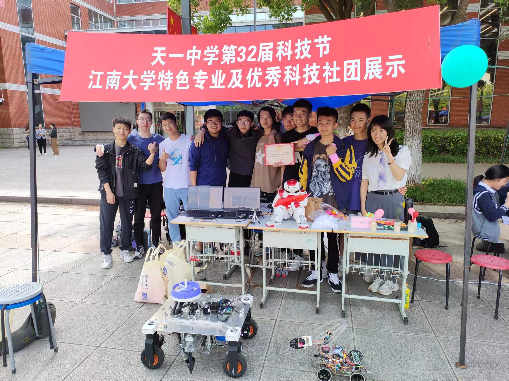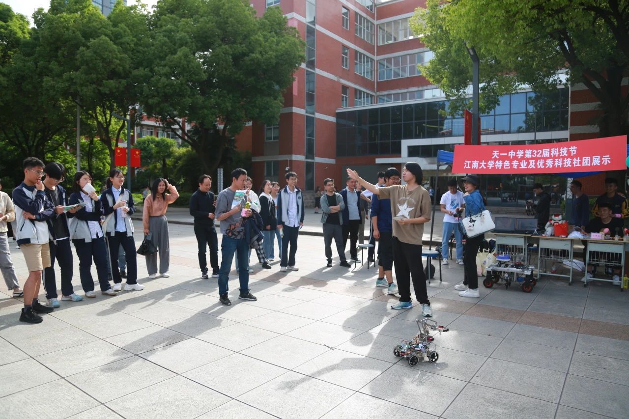 5月12日下午,在江苏省天一中学举办的第32届科技节上,江南大学机械工程学院学生受邀参加“高校特色专业及优秀科技社团展示”活动。活动中,荣获第十届江苏省大学生机械设计大赛兴农机械赛道一等奖的作品《“粒粒有数”多功能豆类播种机》、二等奖作品《钳剪式智能辣椒采摘机器人》,君远学院的NAO人形机器人、哨兵小车、自制无人机悉数登场。