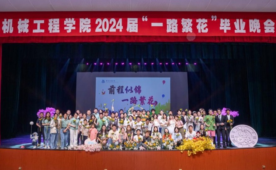 5月26日晚,机械工程学院2024届“一路繁花”毕业晚会于文浩馆进行。学院领导班子、各系部主任、毕业班班主任、学院教师代表、辅导员老师与800余名毕业生一同观看晚会。