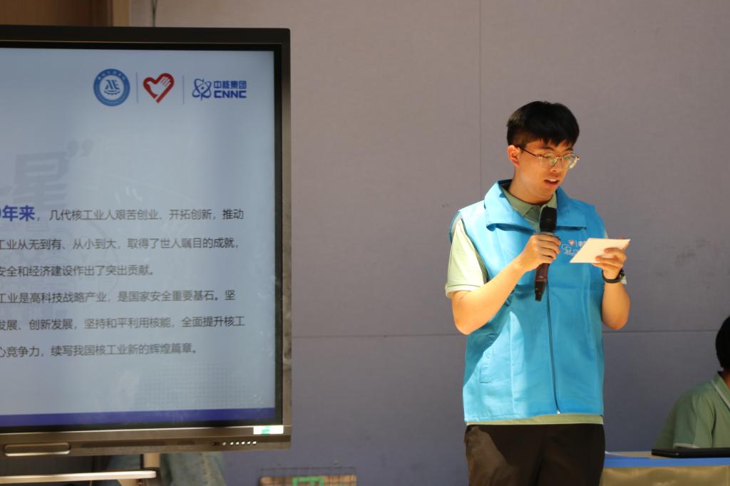 今年是中国第一颗原子弹爆炸成功60周年,也“两弹一星”精神提出25周年。为弘扬“两弹一星”精神,研究生张权讲述了我国“栉风沐雨廿十年,两弹一星耀然苍穹”艰难历程和“两弹一星”元勋姚桐斌同志不朽的一生。“热爱祖国、无私奉献、自力更生、艰苦奋斗、大力协同、勇于攀登”的“两弹一星”精神深深激励了现场的小朋友们。