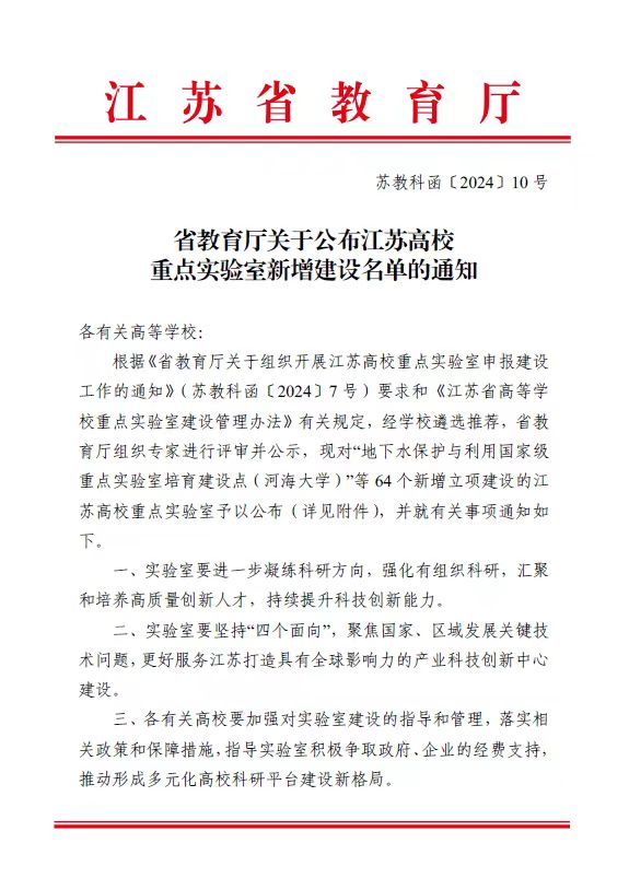 近日,江苏省教育厅下发《省教育厅关于公布江苏高校重点实验室新增建设名单的通知》(苏教科[2024]10号),正式批准了2024年度高校重点实验室64个。我院获批轻工智能制造装备技术省高校重点实验室。