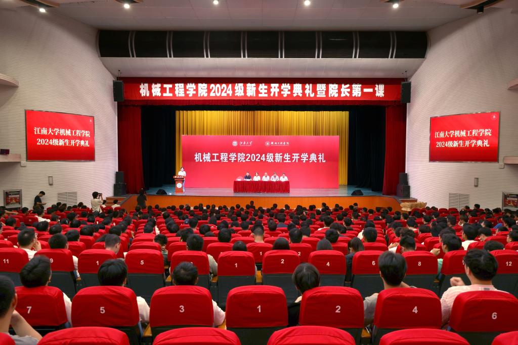 9月20日晚,江南大学机械工程学院2024级新生开学典礼在文浩馆举行。机械工程学院党委书记高雪梅,院长赵军华,党委副书记、副院长刘升恒,副院长刘禹、钱善华、王东祥,系部主任、新生班主任、年级辅导员及全体2024级新生参加活动。