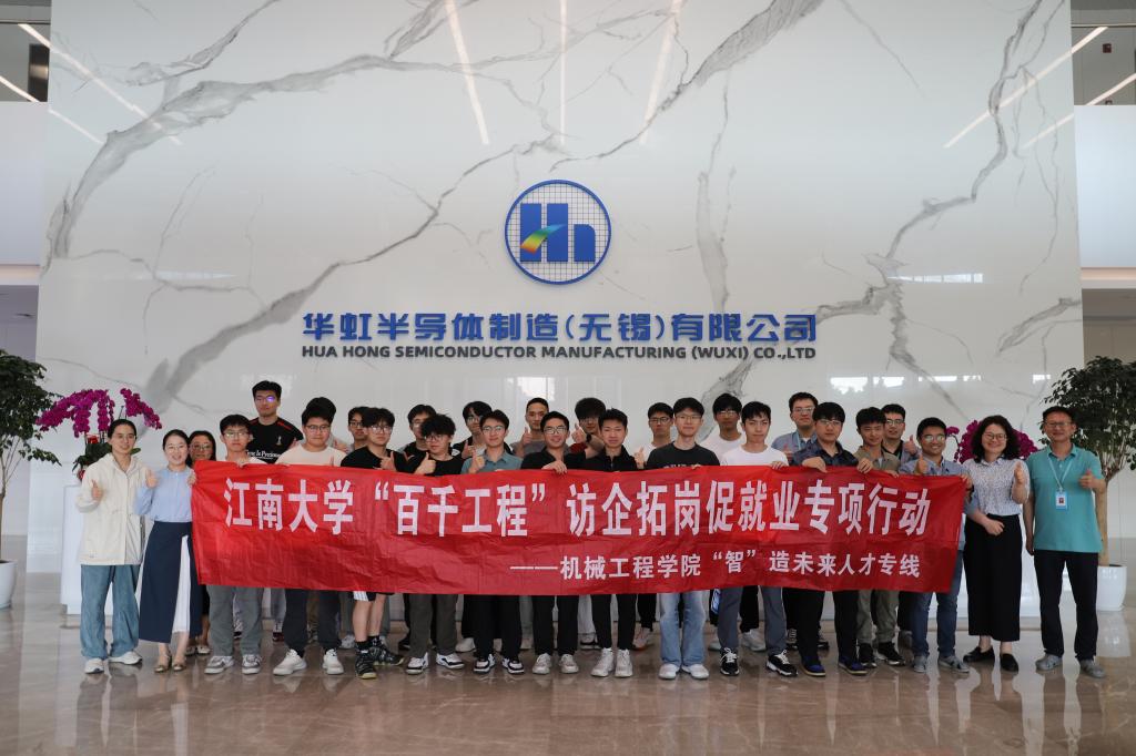 为贯彻落实教育部“访企拓岗促就业”工作部署,搭建毕业生与用人单位双向选择的交流平台,拓宽就业渠道,5月16日,我院赴华虹半导体(无锡)有限公司开展访企拓岗专项行动。活动主要包括企业展厅和生产车间参观、HR面对面、校友交流座谈等形式。学院党委副书记、副院长刘升恒带队,学院分团委书记、学工办主任李诗炜,就业负责老师与20余名2026届本、硕学生参加活动。