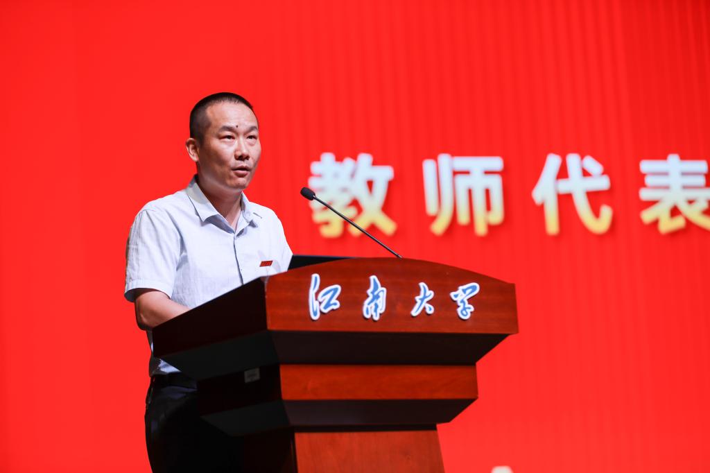 学生代表发言环节,2022级博士研究生王飞杰分享科研心得,倡导“脚踏实地”的科研态度、“勇于创新”的交叉思维和“服务家国”的大我情怀,勉励新生扎实走好科研每一步,用扎实的科研成果服务国家发展战略。2025级硕士研究生朱国霖和本科生宗琦景代表新生表态,将秉承“笃学尚行,止于至善”的校训和“厚德求实,博学践行”的院训,于江南沃土上成长、成人、成才。