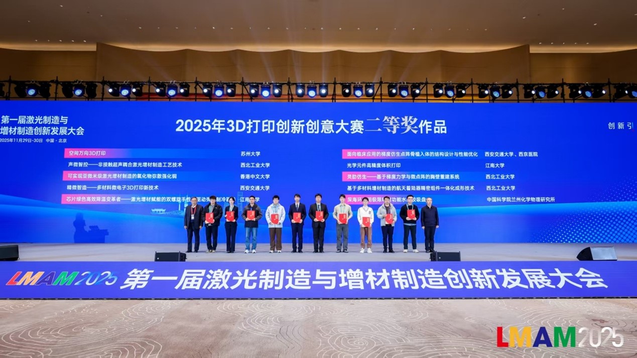 近日,由中国机械工程学会主办的第一届3D打印创新创意大赛决赛在北京国家会议中心落下帷幕。本届大赛共吸引全国400余支高校与企业队伍报名参赛,汇聚了包括清华大学、西安交通大学、北京理工大学等多所国内顶尖高校的优秀学子同场竞技。我院参赛团队经过线上初赛的层层选拔与线下决赛的激烈角逐,荣获两项全国二等奖,双双跻身全国前15强,中国科学院贾振元院士与中国工程院邓宗全院士共同为获奖团队颁奖,这不仅是对参赛学子学术创新能力的高度认可,也充分展示了我院在本硕博创新人才培养方面的显著成效。