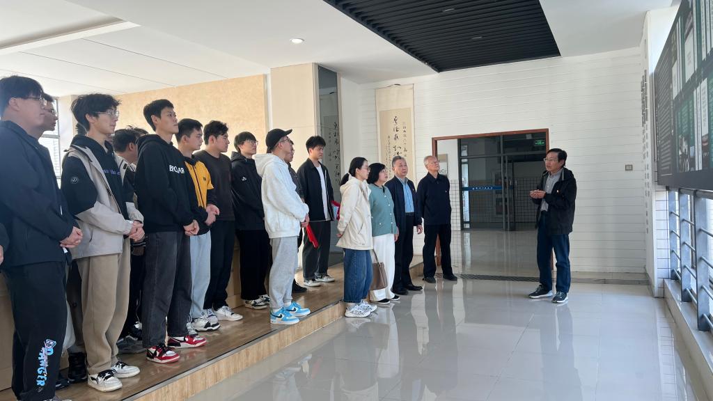 活动第二站,师生来到机械工程学院院史长廊,机械离退休党支部书记、学院关工委常务副主任黄正明老师为大家讲解机械工程学院的发展历程。江南大学机械工程专业在1958年建校之际就开始了招生办学,从扎根传统机械学科,到紧跟时代在智能制造、新能源装备等前沿领域积极探索,学科不断建设发展。办学六十多年来,涌现出一批批优秀学子,以其过硬的专业本领、踏实的行事风格在事业发展上有所作为。机械离退休党支部成员、原机械工程学院院长张裕中老师寄语年轻同学:奋斗的道路必定曲折,但要始终坚信前途光明,在奋进征途上展现机械学子的风采。
